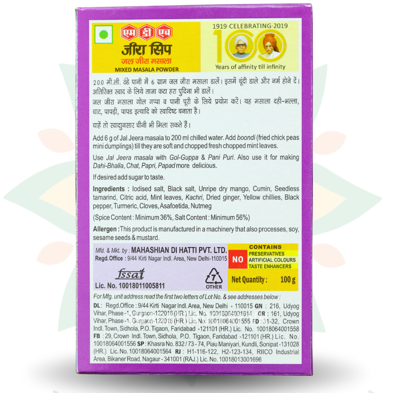 • Key Benefits / Main Highlights: Jal Jeera is a traditional Indian spiced drink mix, known for its refreshing, tangy, and digestive properties. Made with cumin, mint, black salt, and other spices, it is perfect for hot days or after meals.