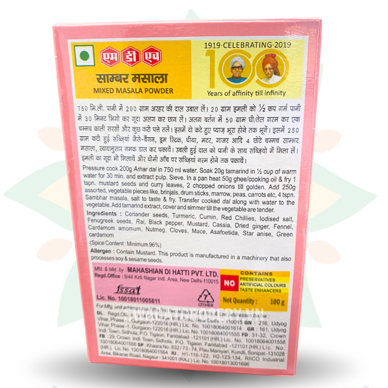 Tên sản phẩm: Bột Gia Vị MDH Sambhar Masala – 100g