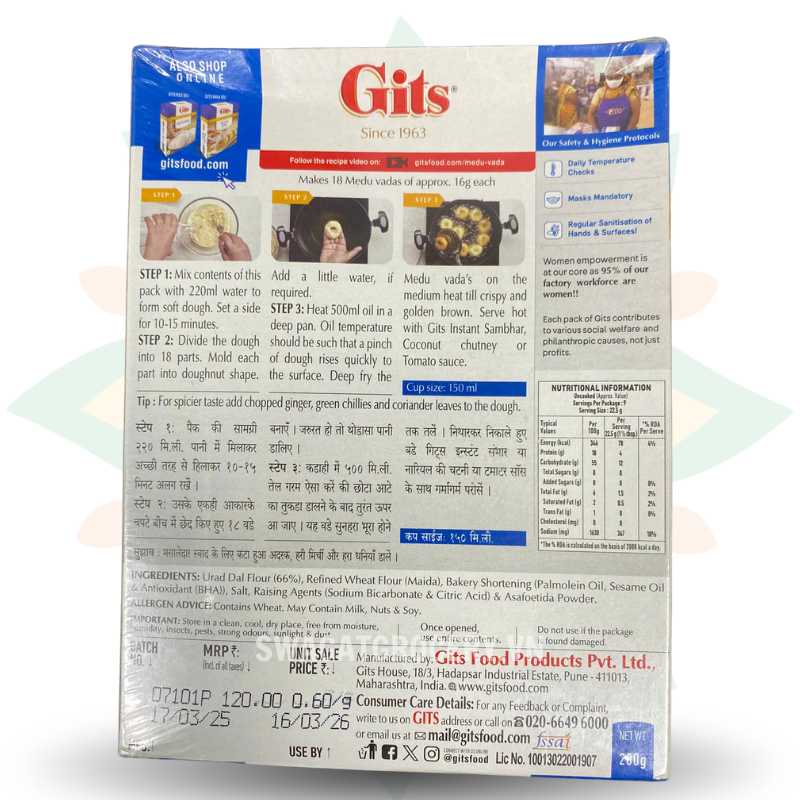 • Tên sản phẩm: Bột làm bánh Medu Vada Gits